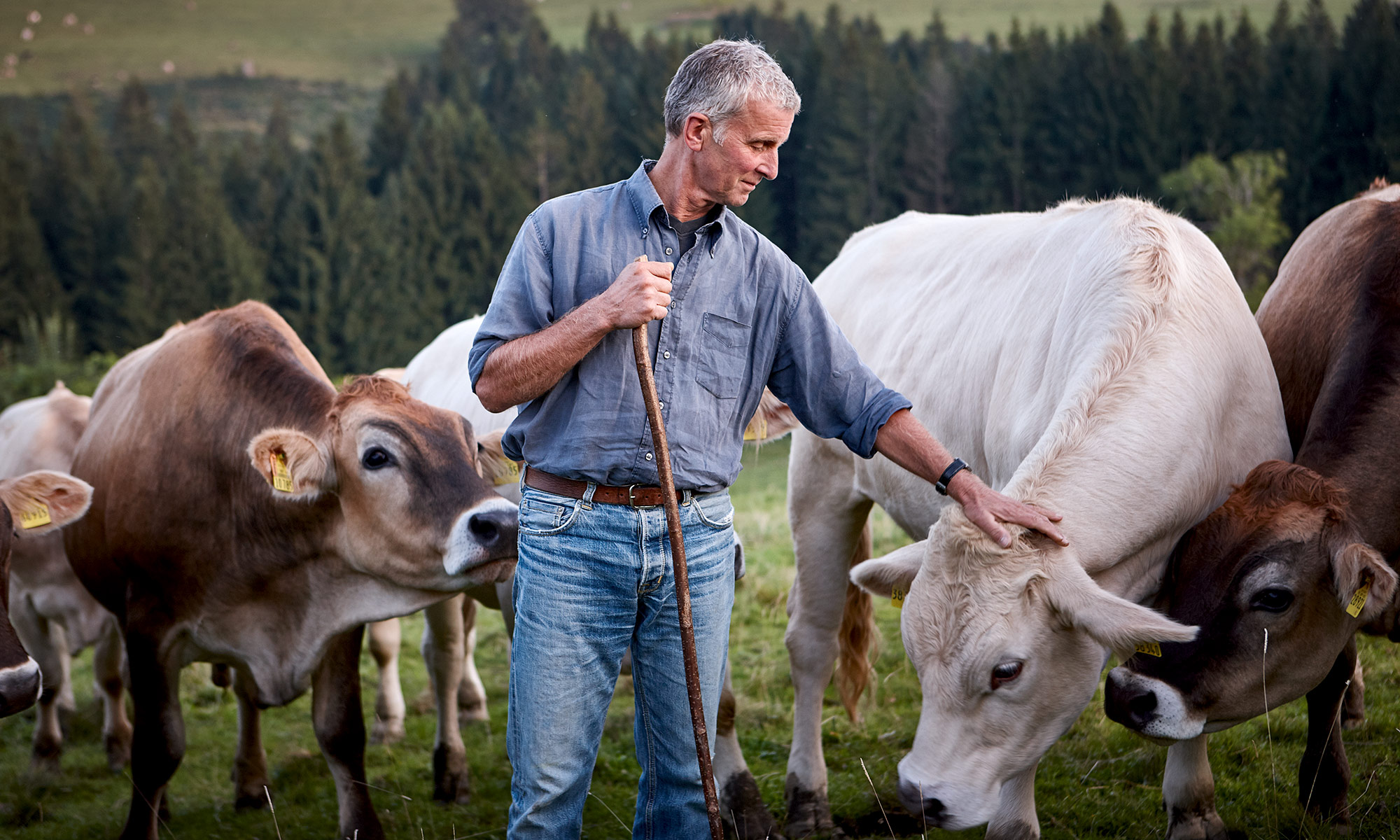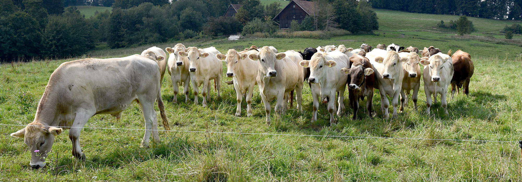 Ganz klar: Unsere Rinder fühlen sich wohl. Wir halten sie artgerecht, streng nach den Vorgaben des Programms „Geprüfte Qualität und Sicherheit/Offene Stalltür“. Wir setzen auf traditionelle bäuerliche Haltung. Dazu gehört z.B. der Auslauf auf der Weide oder im Laufhof. Das macht mehr Arbeit und bedeutet höheren Aufwand. Dafür bekommen Sie ein Qualitätsfleisch, das seinen Preis mehr als wert ist. PrimaRind erhalten Sie in allen Filialen von Feneberg und Kaufmarkt. Und in vielen Gasthöfen der Aktion LandZunge.