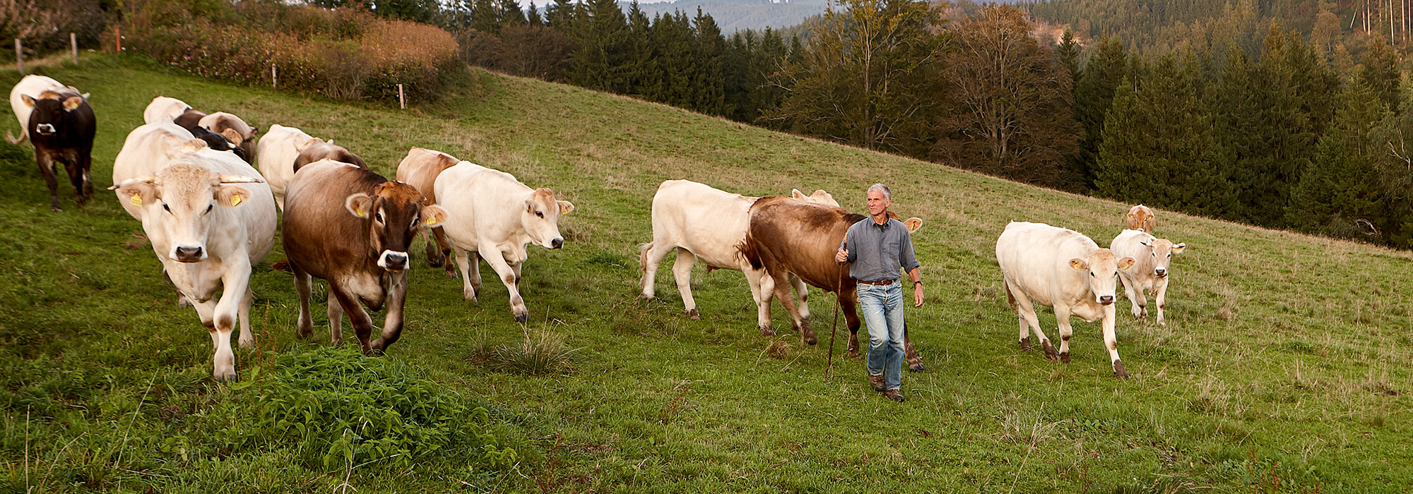 PrimaRind garantiert bestes Fleisch aus Allgäu-Oberschwaben. Hinter der Marke stehen rund 200 Landwirte der Region. Sie sind organisiert in der Prima Rind & Kalb GmbH, die gemeinsam mit der Firma Feneberg alle Tiere vermarktet. PrimaRind ist ein starkes bäuerliches Modell, das vielen Nebenerwerbslandwirten ein schönes Zubrot sichert, die Bauernhöfe erhält und die schöne Landschaft des Allgäus pflegt. Die charakteristischen Rinder mit ihrer hellen Farbe sind auf immer mehr Weiden zu bewundern. Die Herden sind meist klein, keine Spur von Massentierhaltung.